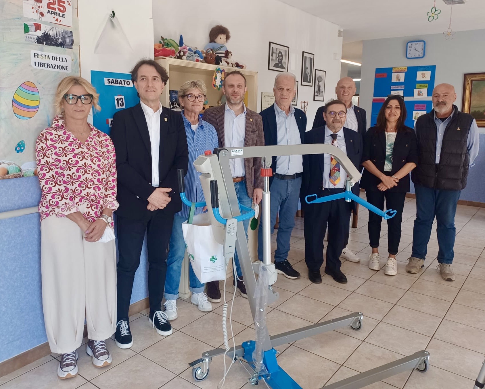 Sabato mattina, presso la sede della casa di riposo “Casa Amica” di Camerino, è stata formalizzata la donazione di un sollevatore elettrico per persone da parte del Rotary Club di Camerino. La cerimonia di consegna ha visto la partecipazione del sindaco di Camerino, Roberto Lucarelli, insieme al presidente del Rotary Camerino, Mario Cavallaro, e altri membri del direttivo. Presenti anche il presidente della Fondazione “Casa Amica”, Angelo Montaruli, i consiglieri Giovanni Biondi e Anna Rita Biancofiore, la coordinatrice Giusi Andreassi e il personale della casa di riposo.